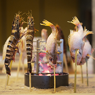 숯의 원적외선으로 조리하는 원시구이 전문점으로